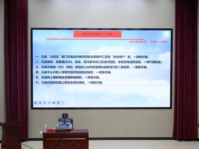此外,李警官还通过幽默的形式讲解了“十二个凡是”防骗口诀,特别提醒:公检法要求转账至“安全账户”、领导亲友网上借钱未核实、收到陌生付款链接或二维码等情况,均属诈骗行为。