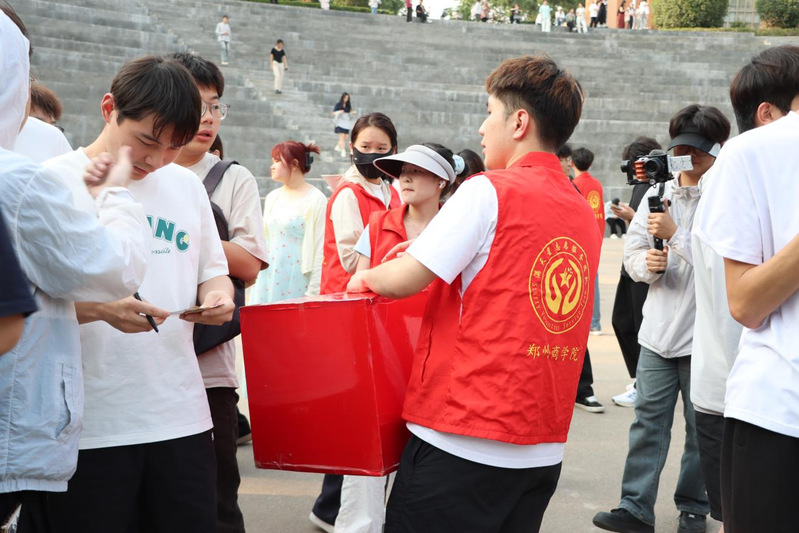 活动现场,热闹非凡,数千名师生积极参与。由学生组成的志愿者团队化身“劳动先锋”,按照学习、生活、健身、娱乐四大类对物品进行细致分类,并完成清洁消毒、陈列布展等工作。同学们既是“劳动参与者”,也是“资源循环践行者”——在展区内精心挑选,兑换自己心爱的东西。最终,他们不仅得到了实用的物品,更在交换中感受到了同学们之间的温情与关怀。除了热闹的物品置换环节,最吸睛的当属“劳动幸运抽奖箱”区域,学校精心准备了劳动特色文创礼品。学生每成功捐赠一件闲置物品,即可获得一张抽奖券,凭券参与抽奖。