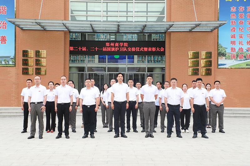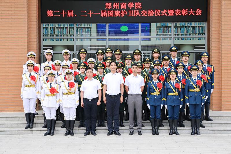 最后,校党委书记吴建军在讲话中对第二十届国旗护卫队圆满完成使命表示祝贺,对第二十一届国旗护卫队寄予厚望,望其传承优良品质,捍卫国旗尊严。校领导结合习近平总书记对青年的寄语,向同学们提出三点希望:心怀“国之大者”,让理想与时代同频共振;脚踏实地,做能吃苦的新时代好青年;勇于追梦圆梦,让理想在实践中开花结果。最后,号召广大郑商学子学习习近平总书记在河南考察时的重要讲话精神,在民族复兴征程上勇担先锋、奉献青春。