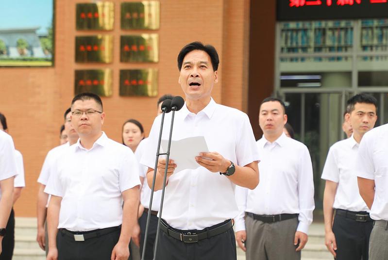 此次交接仪式暨表彰大会,不仅是对第二十届国旗护卫队的总结与褒奖,更是对第二十一届国旗护卫队的激励与鞭策。希望全校同学牢记嘱托,认真学习领悟习近平总书记重要讲话精神,以奋斗担当诠释青春誓言,在强国建设、民族复兴的新征程上,书写属于新时代青年的壮丽篇章。