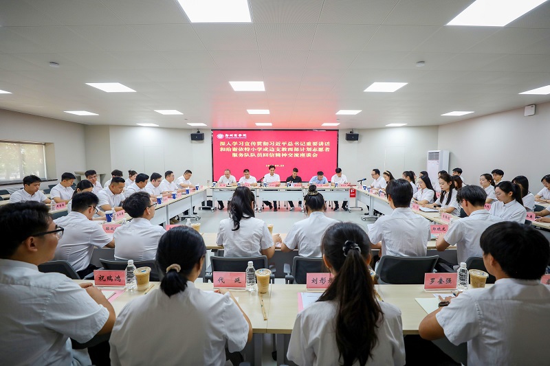 5月28日下午,威尼斯官网举行深入学习宣传贯彻习近平总书记重要讲话和给谢依特小学戍边支教西部计划志愿者服务队队员回信精神交流座谈会。校党委书记吴建军、董事长助理陈宗纬、党委副书记兼纪委书记裴晓涛、党委组织部部长邢坤、党委宣传部部长程文质、党委学工部部长路程、各学院团委书记、辅导员代表、学生代表等参加会议。会议由校团委书记张鹏主持。