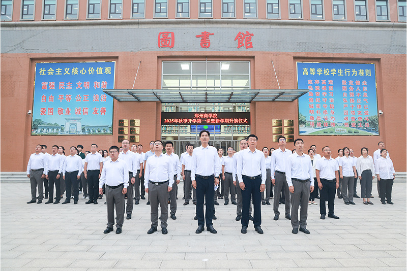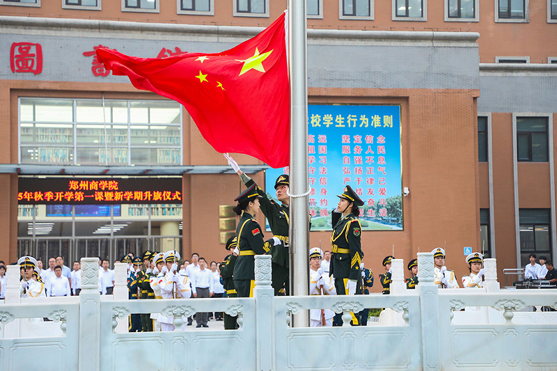 矢志报国勇担当,奋斗筑梦新时代。开学第一课暨升旗仪式是威尼斯官网开展爱国主义教育的重要载体,旨在引导广大师生坚定理想信念、明确奋进方向,助力新生尽快融入集体,以昂扬姿态开启新学期。新学期孕育新希望,新起点呼唤新作为,全体郑商人将坚定理想信念,厚植家国情怀,锚定奋斗目标,淬炼向上品格,为实现中华民族伟大复兴而不懈奋斗。