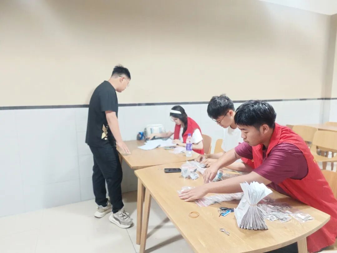 面对离宿期间骤然增加的行李搬运与环境卫生清理压力,宿管老师和学生干部积极协助毕业生搬运行李,安全高效地将沉重包裹、大件物品运送至宿舍大厅,有效缓解了毕业生的离宿负担。另一方面,为维护宿舍公共区域的整洁畅通,宿管老师们全力投入环境清理工作,协助毕业生整理废弃物品,打包堆积杂物,并统一清运至指定堆放点。在离宿期间加强了对楼道、公共区域的重点清扫,确保环境整洁有序。同时,学生干部逐一回收并登记毕业生退还的空调遥控器与宿舍门钥匙,认真清点核对宿舍公共物品清单;并积极引导人流、维持秩序,耐心解答疑问,保障了离宿工作的高效、平稳进行。