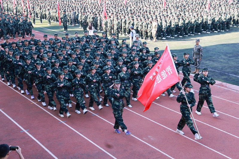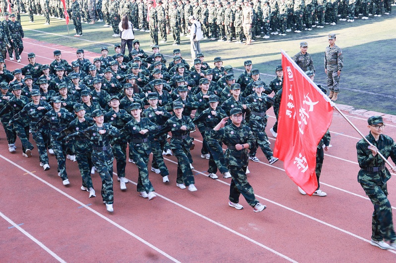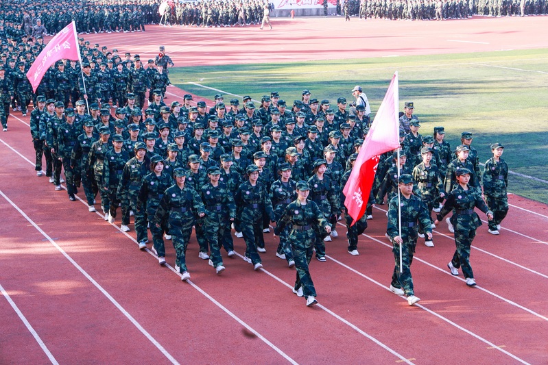 随着《中国人民解放军进行曲》激昂的旋律响起,新生军训汇报表演正式开始。各方阵队伍步伐铿锵、意气风发,依次通过主席台,同学们目光坚毅、口号嘹亮,刚劲有力、气势如虹,展现出郑商学子昂扬向上的精神风貌和“请党放心,强国有我”的青春担当。他们挺拔的军姿、整齐的步伐、自信的气度获得了现场阵阵掌声。