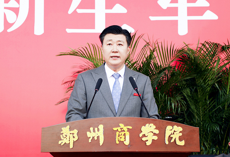校长吴泽强在讲话中向圆满完成军训任务的同学表示祝贺,向科学施训的教官和暖心陪伴的辅导员表示感谢。他从“郑商是一所因情怀而生的大学、是一所以奋斗立身的大学、更是一所驰向未来的大学”三个方面,详细介绍了学校的办学历程、办学理念与育人成果。