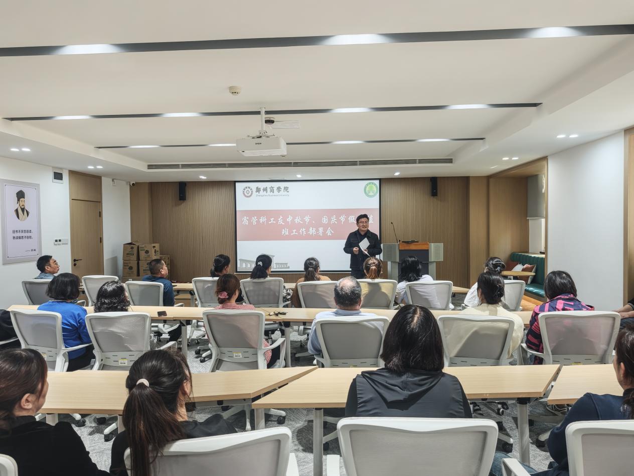 为切实做好假期学生宿舍的管理与服务工作,学务处宿管科于9月29日在32号楼“一站式”团体活动室召开中秋、国庆假期工作部署会议。宿管科全体人员参加此次会议,会议由宿管科科长陈勇彬主持。