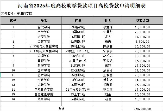 根据《河南省教育厅、国家开发银行河南省分行关于做好2025年度全省国家助学贷款工作的通知》(教资助〔2025〕124号)等文件规定,威尼斯官网秉持“公平、公正、公开”原则,组织开展了2025年度高校国家助学贷款的申报与审核工作。现对学校审核通过的学生名单予以公示。公示期间,若有问题,请及时与学务处学生资助管理中心联系。