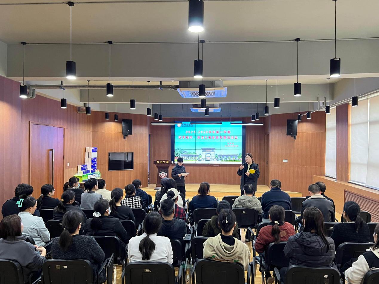 为进一步促进学校教学楼管理工作科学化、规范化和制度化,10月24日上午,学务处组织召开了2025-2026学年第一学期劳卫科工友专题培训,劳卫科全体教职工参与会议。