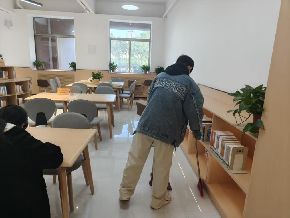 自图书角启用以来,艺起读书协会的同学组建了“文明守护队”,他们的工作看似平凡却至关重要:整理歪斜的书籍;及时清理桌面杂物;傍晚仔细检查每一本书籍是否完好;遇到借阅高峰,他们耐心引导大家有序取书,用微笑化解小摩擦。正是这份 “坚守”,让图书角始终保持着整洁有序的模样,也让文明的种子在潜移默化中传递。