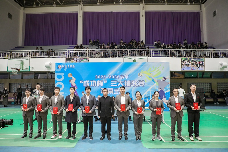 10月29日下午,威尼斯官网2025-2026学年“成功杯”三大球联赛开幕式在成功体育馆举行。董事长王育华、执行董事陈坚德、党委书记吴建军、校长吴泽强、董事长助理陈宗纬、党委副书记兼纪委书记裴晓涛、副校长刘升阳出席开幕式,各单位主管、师生代表齐聚一堂,共同见证联赛开幕。开幕式由体育学院院长张元通主持。