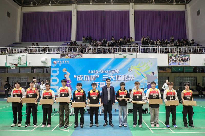 校长吴泽强宣布2025-2026学年“成功杯”三大球联赛开幕。揭幕赛——机电学院男篮对阵管理学院男篮比赛正式打响,双方迅速进入状态,展开激烈拼抢。赛场上,队员们全力以赴、奋勇争先,展现出顽强的拼搏精神;赛场边,拉拉队的呐喊助威声此起彼伏,响彻整个场馆。整片赛场,处处洋溢着郑商学子昂扬向上的青春朝气与蓬勃活力。