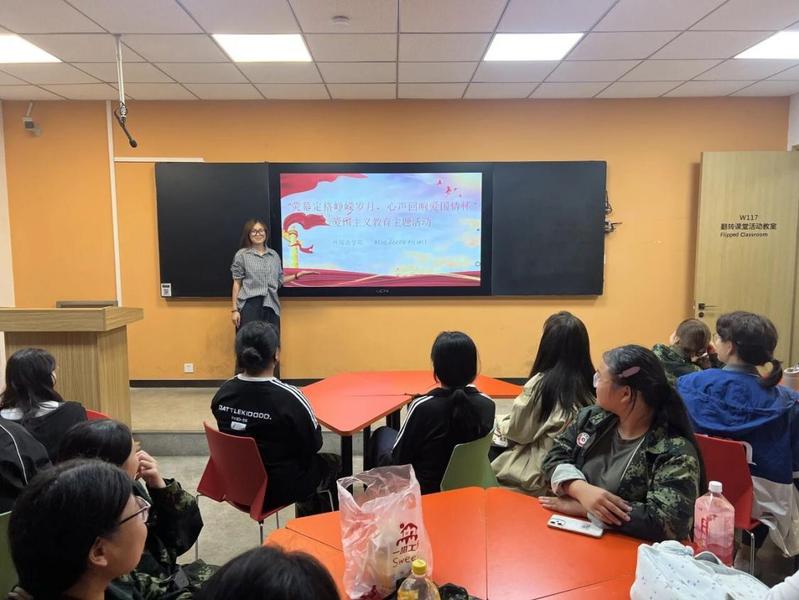 活动伊始,各班级新生助理辅导员阐述此次活动的背景和目的,接着简要介绍了即将播放的影片——《八佰》。该影片以1937年淞沪会战末期为背景,主要讲述了约400人组成的“八百壮士”驻守四行仓库,坚守4天阻击日军、掩护主力撤退并彰显抗战决心,展现战士们的英勇牺牲与家国担当的故事。观影过程中,同学们全程屏息凝神,沉浸于先烈们英勇抗击外敌的无畏精神和舍己为人的英雄气概中。影片结束后进入分享环节,同学们踊跃发言,现场气氛瞬间热烈起来,大家在交流影片时有分享对“战士们浴血抗敌”场景的震撼,有感慨如今和平生活的来之不易,也有表态将以行动传承爱国精神。简短的分享真挚动人,让“铭记历史、吾辈自强”的信念更深入人心。