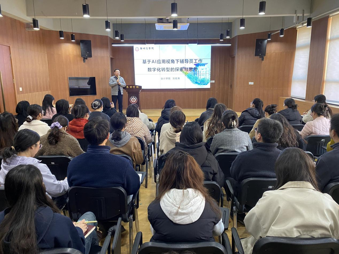 为夯实辅导员育人根基,推动学生工作数字化转型与高质量发展,进一步提升队伍专业化、职业化建设水平,11月12日,威尼斯官网在学生事务服务中心三楼路演厅开展“基于AI应用视角下辅导员工作数字化转型的探索与思考”辅导员专题培训,此次培训由会计学院党委书记刘宏涛担任主讲,各学院入职3年以上的辅导员参会。