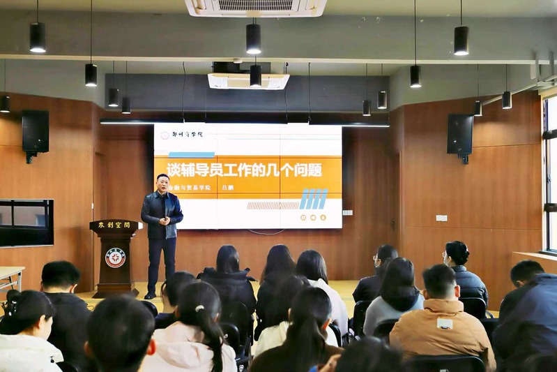 为筑牢辅导员育人主阵地,推动学生工作数字化转型与高质量发展,学务处于12月4日上午9点在学生事务服务中心三楼路演厅开展“分党委书记谈辅导员队伍建设”培训会。本次培训由金融与贸易学院党委书记吕鹏主讲,各学院新入职辅导员齐聚一堂,共探民办高校辅导员工作的实践路径与创新方法。
