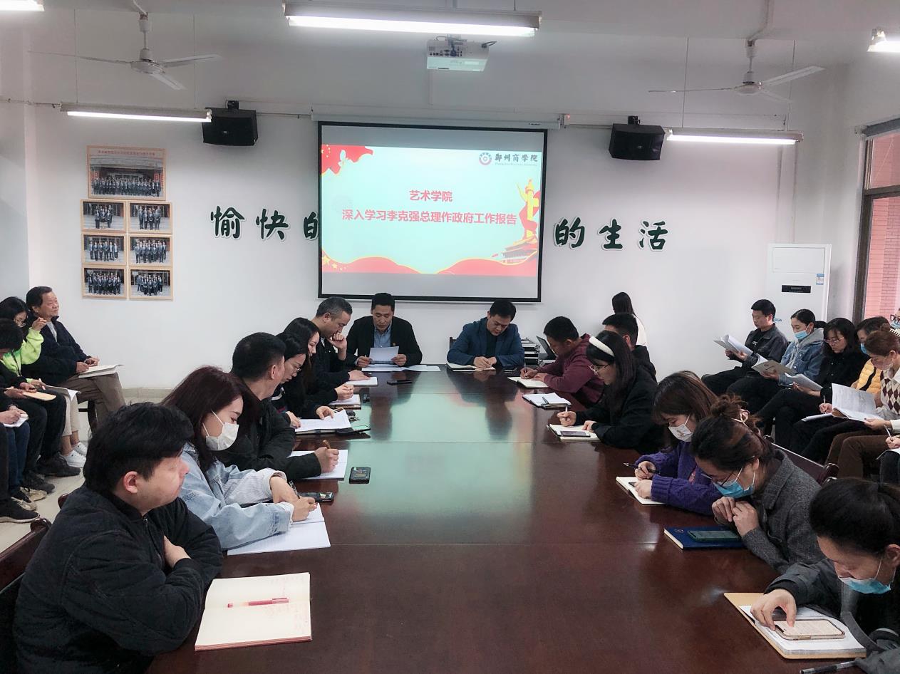 在接下来的工作中,艺术学院全体教职工将会认真研读《政府工作报告》,主动学、重点学、认真学报告中涉及教育方面的重要论述,并结合自己工作实际拟定工作计划。