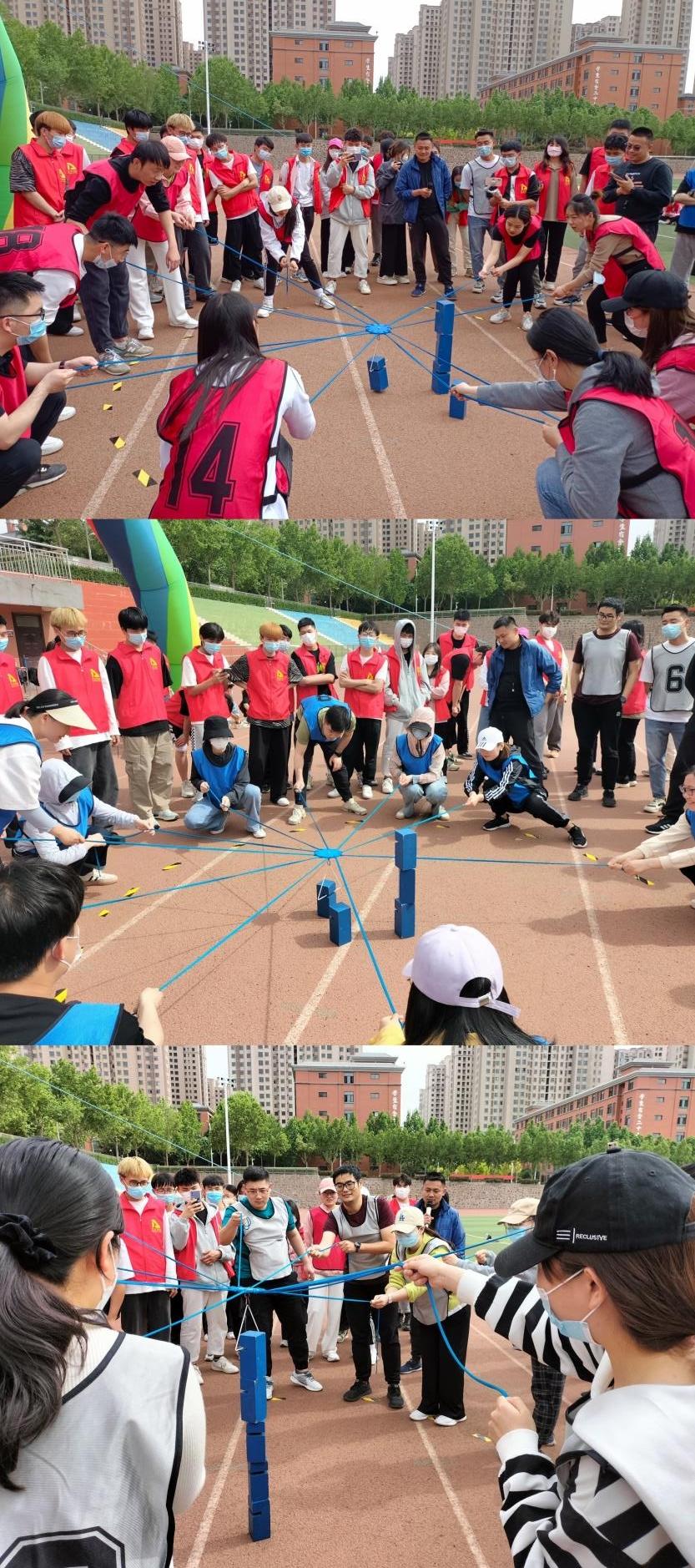 紧接着,在工作室成员的组织引导下,各代表队通力协作、勇夺先锋,体验了“合力建塔、齐心协力、动力火车、盲人踩雷”四个培训项目。辅导员们全心投入,认真对待,积极配合,各个项目都表现的十分出色,现场气氛热烈,营造了努力拼搏、团结协作的氛围。