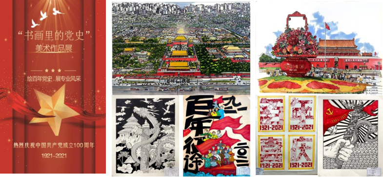举办“书画里的党史、手绘红色革命老区、魅力冬奥会”3次大型红色主题美术作品展,通过绘画、书法等形式,生动再现历史人物和历史事件,营造浓厚的建党百年爱国主义教育氛围。
