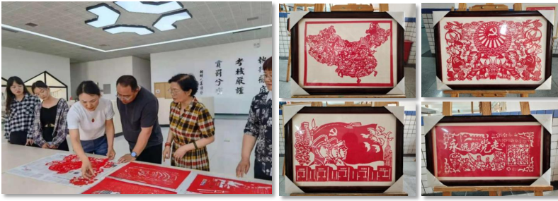 借助第二课堂剪之韵艺社团用传统剪纸艺术和党史学习教育相结合,创作党徽、党旗、全国人民大团结等系列作品,讲述百年党史中激动人心的党史故事。