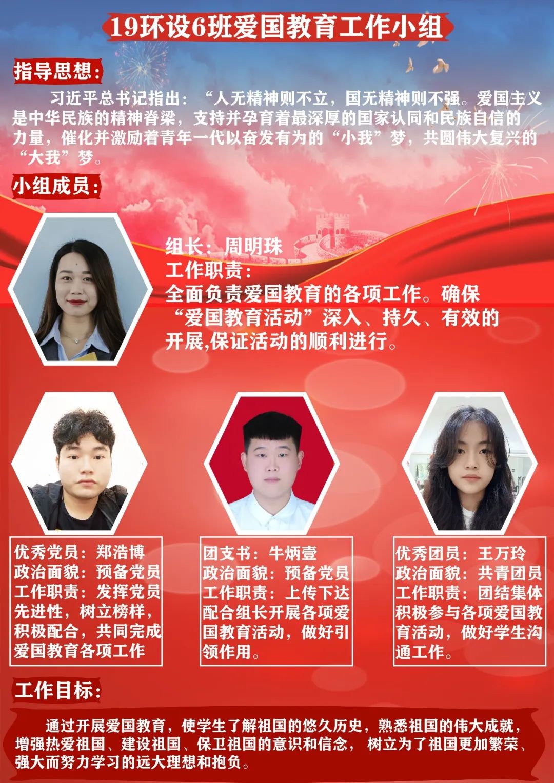 成立以辅导员、班级党员、团支书、优秀团员为核心的班级爱国主义教育工作小组。明确工作职责,发挥模范先锋带头作用。
