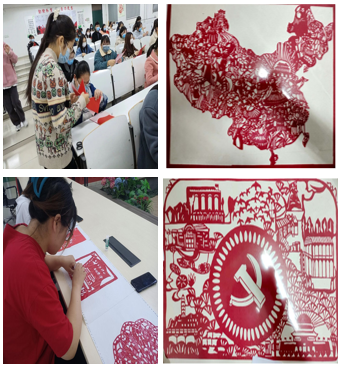 三是成立“初剪”团队,创作爱国主题剪纸作品,弘扬传统文化,用剪刀剪出爱国情谊。并带领团队成员成功申报“河南省大学生创新创业训练计划项目”,目前,已完成中期阶段成果上报。