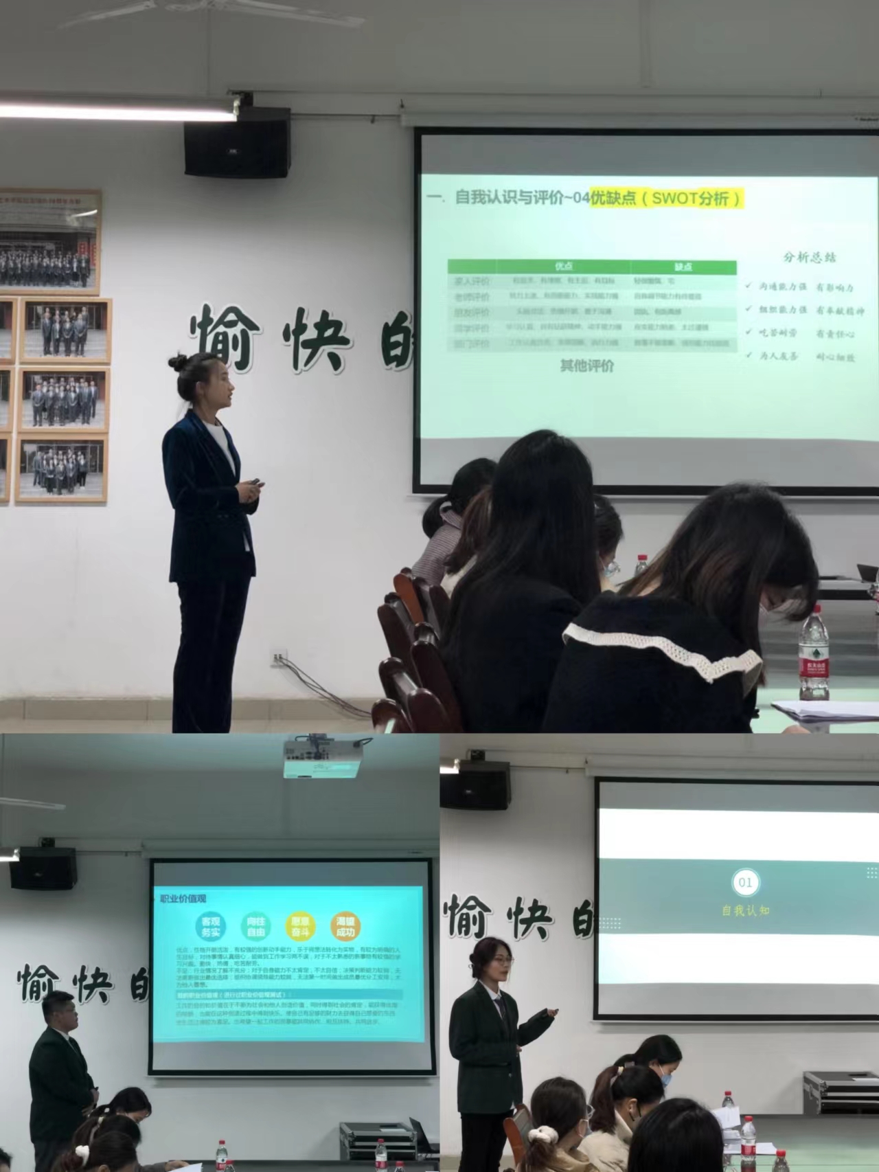比赛结束后,各位评委老师对参赛选手进行了点评,孔颖老师从职业生涯规划策划书中的自我认知、职业认知、职业决策等多个方面,结合具体案例和同学们在策划书撰写中出现的问题,详细讲解了策划书的制作技巧以及如何展示才能吸引评委的注意。