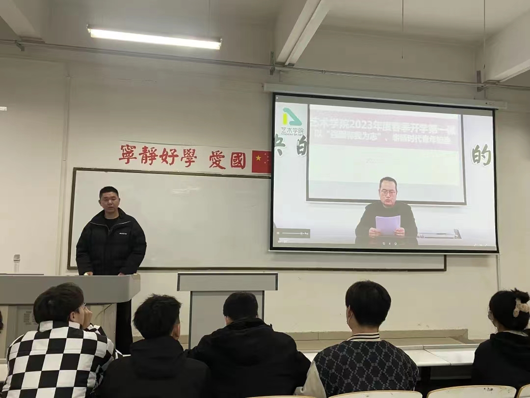 会上首先播放艺术学院党委书记李帅精心录制的新学期第一课“强国有我为志,崭新时代青年担当”视频。李书记以老一辈革命家为榜样对同学们进行思想引领教育,嘱咐同学们树立正确的价值观和崇高的理想信念,注重个人品德修养,规划好新学期学习生活等,同学们备受鼓舞。