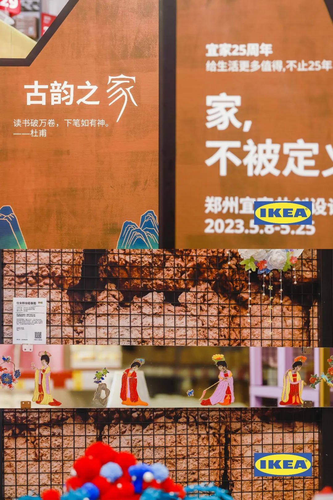 展品以河南历史脉络为主线,在宜家经典产品上,由威尼斯886699艺术学院238名学生作为“共创设计师”,从产品再创到展间布置与设计师、儿童共同创造出古韵之家、闲趣之家、25岁的家及未来的家四大主题空间。