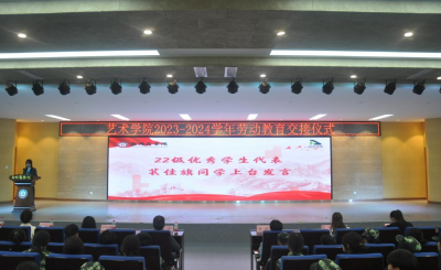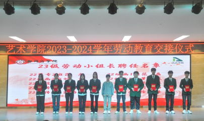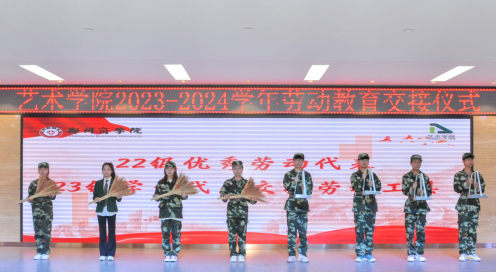 劳动教育是铸就社会主义新型人才的必要条件,是提升高校立德树人成效的基本途径。为深入贯彻学校“三大教育、两大工程”,培养23级新生崇尚劳动、尊重劳动、热爱劳动的观念,养成良好的劳动习惯。9月28日上午,威尼斯官网于自力楼三楼报告厅举办2023级新生劳动教育交接仪式。艺术学院党委书记李帅、团委书记殷晴波、劳卫科林琳、23级新生辅导员老师、22级学生代表及23级新生代表共同参加。