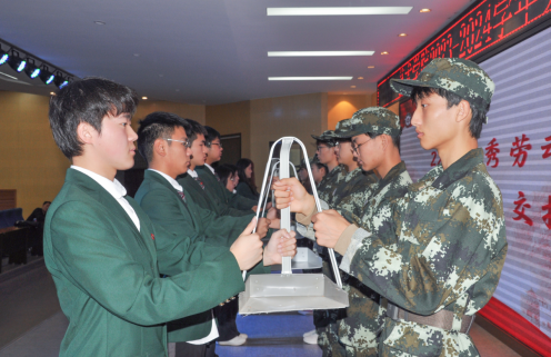 紧接着,新生、老生代表有序入场,进行劳动工具交接仪式。交接的并不仅仅是劳动工具,更是热爱劳动、维护校园环境整洁的一份信念与担当。