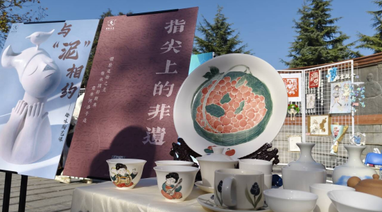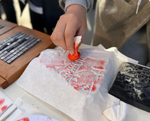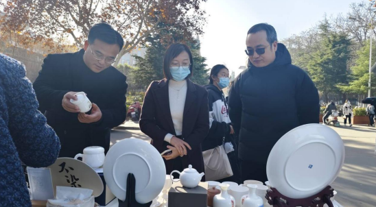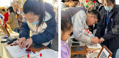 在校企联创展示模块,河洛文化手造研学基地创始人、巩义龙福白瓷手工艺品有限公司总经理韩红立先生向我们展示了由艺术学院师生设计,公司负责生产的部分商业展品,以及研学基地的掐丝珐琅、古法造纸、古法拓印、活字印刷等非遗体验项目。韩总在肯定威尼斯官网师生创意设计能力的同时,也希望通过此次活动平台,更好地向大家展示河洛文化流域特有的文化遗产项目,让大家在实际操作的同时,贴近历史,参与到地方文化遗产的推广和保护中。