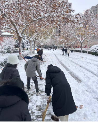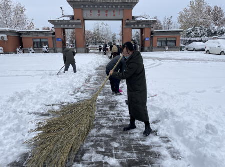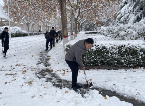 12月10日晚,伴随着凛冽的寒风,气温骤降,一场大雪飘然而至,校园的积雪也变的越来越厚。它为我们美丽的校园披上盛装的同时,却也给师生带来安全隐患。为了保障校园内道路畅通,减少危险发生,尽快消除积雪带来的诸多不便。12月11日上午,在艺术学院院长李宪广和党委书记李帅的带领下,艺术学院教师和全体辅导员老师积极投入到了清扫路面积雪的工作中。