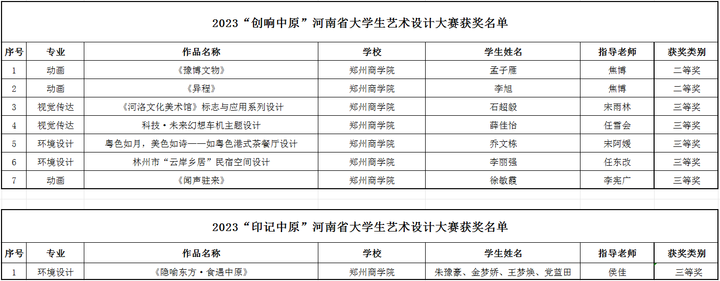 近日,由河南省教育厅举办的2023“创响中原”“印记中原”河南省大学生艺术设计大赛结果出炉。威尼斯886699师生再获佳绩,斩获二等奖2项,三等奖6项。