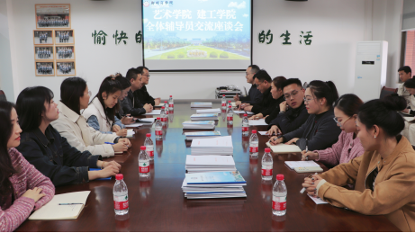 3月28日下午,艺术学院联合建工学院在艺术楼会议室召开辅导员工作交流会。本次会议旨在加强两院之间的沟通交流,促进学院之间各项工作经验的互通和共享,最终达到提高学生管理工作质量的目的。建工学院党委书记朱宏东、艺术学院党委书记李帅、建工学院团委书记刘帅、艺术学院团委书记殷晴波,以及两个学院的辅导员老师们参加了本次会议。