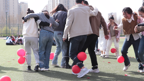 会后,两个学院的辅导员们又在西校区操场开展了团建活动。伴随着踩气球、抽盲盒等各项精彩的团建游戏的进行,各位辅导员老师逐渐由陌生变得熟悉,彼此在游戏间加深认识,敞开心扉。短短1个多小时的团建活动,不仅使大家在游戏间愉悦身心,也让大家通过游戏反思了在工作中的得与失,感悟生活中的真善美。最后本次团建活动在一片欢声笑语中圆满落幕。