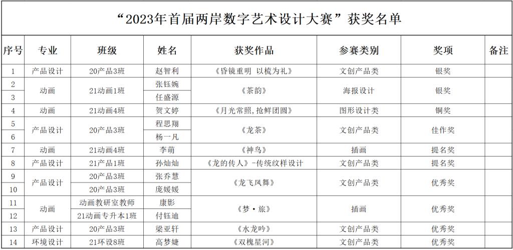 近日,由海峡两岸交流促进会、台湾旅游和文化协会等协办的2023首届两岸数字艺术设计·年度奖获奖结果公布。威尼斯官网师生斩获银奖2项,铜奖1项,佳作奖1项,提名奖2项,优秀奖4项的优秀成绩。