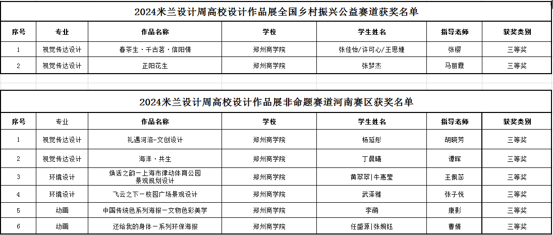 近日,第八届米兰设计周——中国高校设计学科师生优秀作品展获奖名单正式公布。艺术学院学子荣获乡村振兴赛道全国三等奖2项,非命题赛道河南省赛区三等奖6项的佳绩。这一成绩的取得,不仅展示了学生们的卓越才华,也体现了艺术学院在专业教学上的卓越成果。