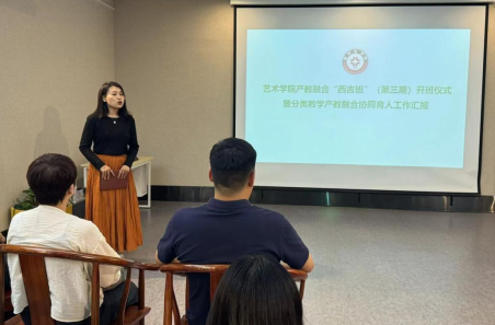 为深入贯彻产教融合发展战略,加强校企合作,培养符合社会需求的高素质艺术人才,艺术学院于6月11日下午在艺术实验中心隆重举行了产教融合“西吉班”三期开班仪式暨分类教学产教融合协同育人工作汇报。本次开班仪式由艺术学院副院长徐千淇主持,徐千淇副院长首先介绍了出席本次活动的嘉宾,其中校方成员包括艺术学院院长李宪广,以及艺术学院各教研室主任。企业方成员包括河南西吉文化传播有限公司校合作负责人齐林峰、洛阳取灯儿数字科技有限公司总经理任晨以及人力资源主管刘玉红。此次活动标志着艺术学院与河南西吉文化传播有限公司的深度合作迈入了新阶段,为双方共同探索协同育人新模式注入了新活力。