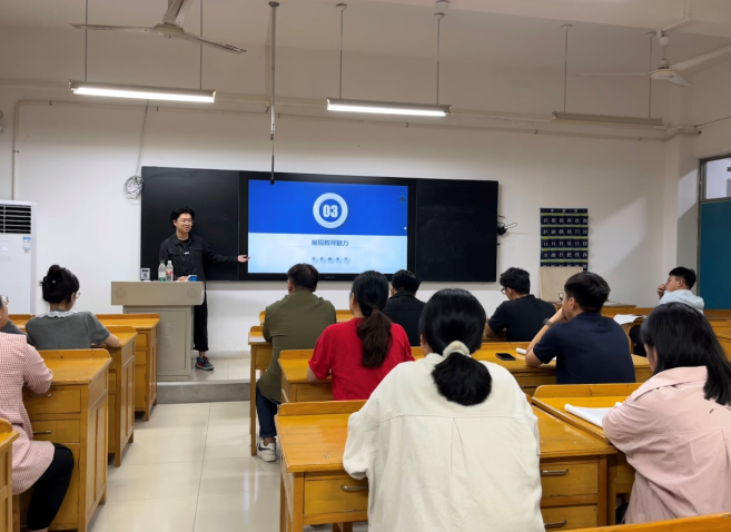 活动伊始,汪国庆老师从教师形象与职业素养的提升,到教学反思与改进多方面做出了总结分享,且颇有见地。其中:新教师需注重职业形象,着装简洁大方,提升语言表达能力,恪守职业道德,增强责任感;在教学设计上,应精心设计教学计划,灵活选择教学方法,深入了解学生需求。课堂管理上,积极与学生互动,营造良好学习氛围;新教师应积极参与专业发展,多元化评估学生,及时公正反馈,并重视教学反思与改进,保持对教学的热情,以稳步站稳讲台;以上三点分享内容深得现场青年教师认可与赞扬。