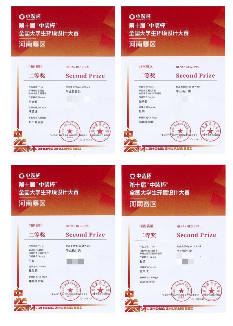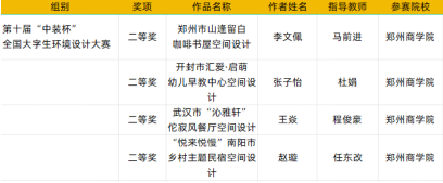 “中装杯”全国大学生环境设计大赛是一项面向全国在校环境设计及相关专业学生的公益性大赛,自2013年首届在清华大学启动以来,已连续成功举办九届。九届大赛共覆盖院校1000余所已成为具有广泛影响力的高校学生设计赛事。艺术学院师生在第十届“中装杯”全国大学生环境设计大赛中获省级二等奖4项、三等奖10项、优秀组织机构奖1项。