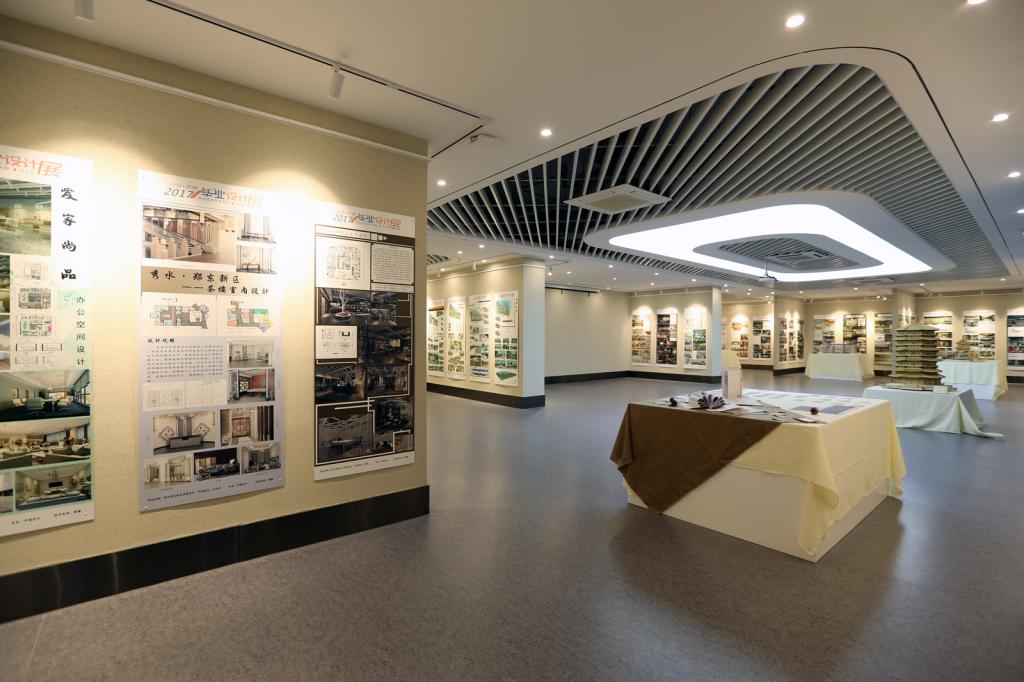 商业艺术实验中心成立于2017年,是艺术学院“艺术+商科”发展定位下应用型人才培养的实践教学平台。中心建有8间实验室和19间电脑机房,保证校内实验环节100%开课率,助力学生掌握专业技能和实践经验;有8间工作室,通过引入企业导师驻场指导与学院专任教师联合入驻机制,成功孵化真实设计项目,构建起“双师协同、项目驱动”的教学实践平台,为深化产教融合、创新协同育人模式提供完善的硬件设施与场地保障。中心一楼设有一间800平方米的艺术展厅,该空间以服务艺术学院各专业教学成果展示为核心,秉持开放共享理念,举办艺术成果交流展、专题艺术展等多元艺术活动,持续促进产学研深度联动。中心贯彻“把作品转化为商品,让课堂更贴近市场”的人才培养思路,形成“艺术设计+信息技术+商业应用”交叉培养为核心课程主线的应用型课程体系,强化实践教学环节,提升学生综合素养和就业竞争力,着力培养具有国际视野、较高审美能力的高素质应用型艺术设计人才。
