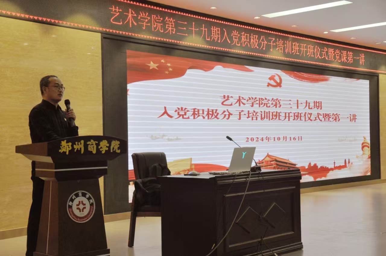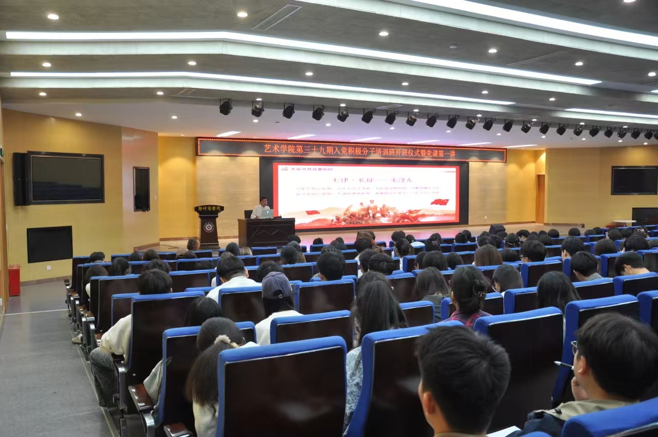 为切实做好入党积极分子培养和考察教育工作,引领积极分子在思想上向党组织靠拢,进一步提升他们的政治理论素养,为培育合格党员打下坚实基础,艺术学院第三十九期入党积极分子开班仪式暨党课第一讲于2024年10月16日晚在自力楼报告厅隆重举行。艺术学院党委书记李帅、马克思主义学院老师李巨存、党委组织委员胡颖以及第三十九期入党积极分子全体成员参加此次开班仪式。本次会议由胡颖老师主持,李巨存老师主讲。