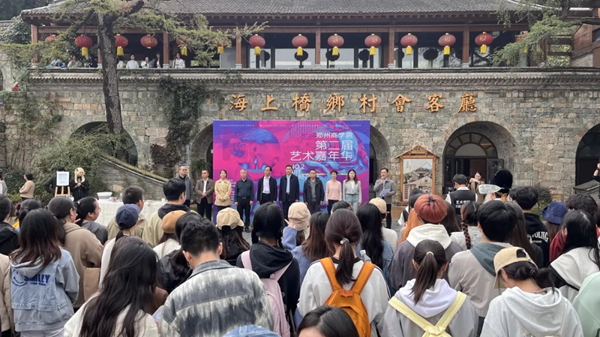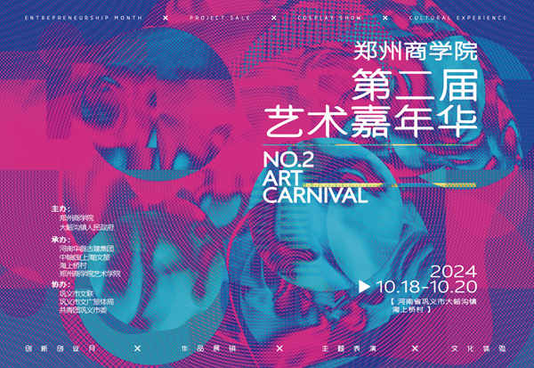 本届艺术嘉年华活动为期三天,团市委副书记陈子琪,市文广旅局副局长崔亚兵,市文联副主席王琼,巩义市大峪沟镇镇一级主任科员王晓辉,河南华磊古建集团有限公司董事长苏发生,河洛文化手造研学基地创始人、巩义龙福白瓷手工艺品有限公司总经理韩红立,中轴线(上海)文化旅游有限公司巩义分公司运营总监刘伟,威尼斯官网张江涛副校长,艺术学院院长李宪广,院党委书记李帅以及学院师生代表出席开幕式。李院长主持开幕式。