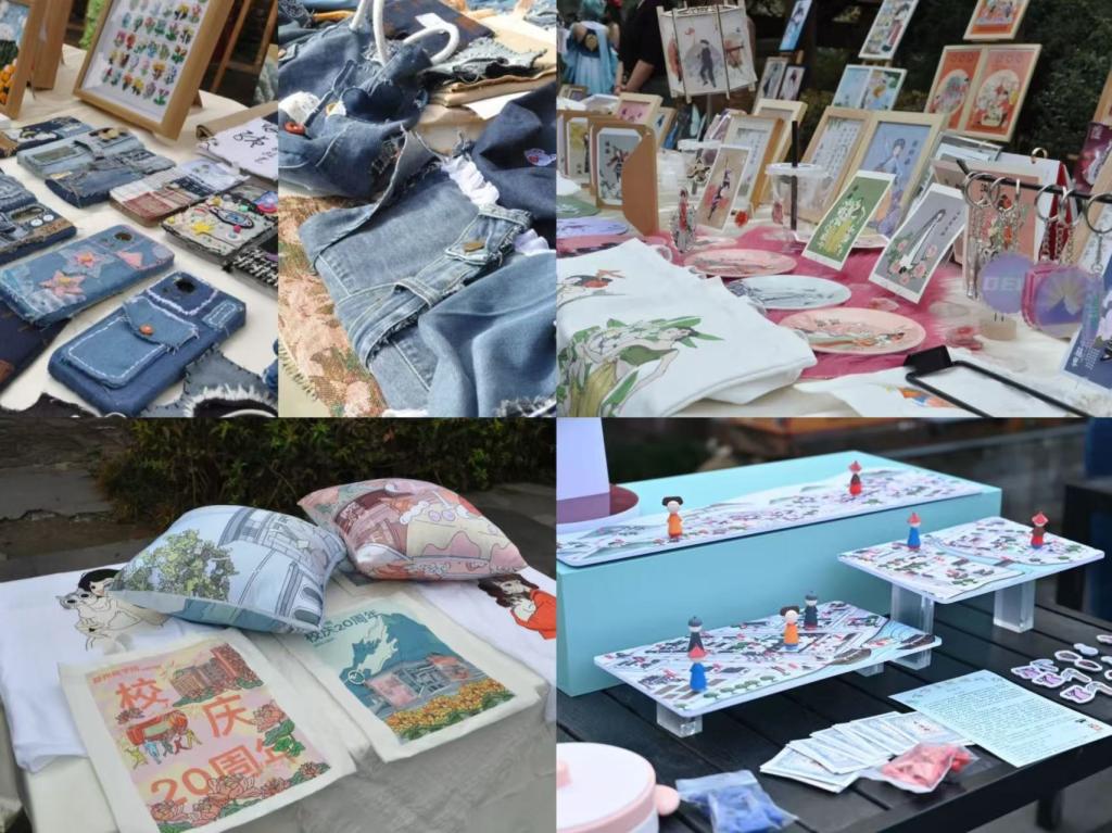 每一个小巧的作物,都承载着一份对于艺术的追求,一份热爱下经过付出和努力的实践。喧闹的跳蚤市场上,一转角就是它的清丽脱俗。每件饰物都代表着不同的寓意与祝福,依托于中华传统文化的魅力,使它们无须刻意,只那么静静的摆放在蓝色方巾上,等待着有缘人的到来。一朵莲花,一束芳草,镌刻在碟中,泼洒在扇上,镶嵌在璧里。中式古典审美如这璧上的莲花,亭亭玉立在会展中,绽放出与众不同的魅力。这套“莲韵手作”凭借硬古风的朴实和淡雅,引来了大量游客的驻足。古典与新潮的交汇与融合,二次元文化和团扇制作的碰撞,这些作品被命名为“扇动的艺术”,通过传统工艺品和现代审美的有机结合,丰富了团扇的表现形式,充分体现了新时代艺术应有的风采。