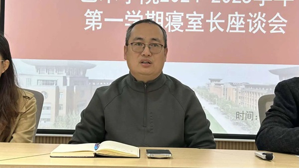 接着,艺术学院党委书记李帅指出,宿舍长作为学生干部的重要组成部分,要明确职责,发挥好带头作用。他以亲身经历阐述了宿舍生活中学会与人相处的重要性,鼓励大家在宿舍生活中求同存异,共同营造和谐的宿舍氛围。