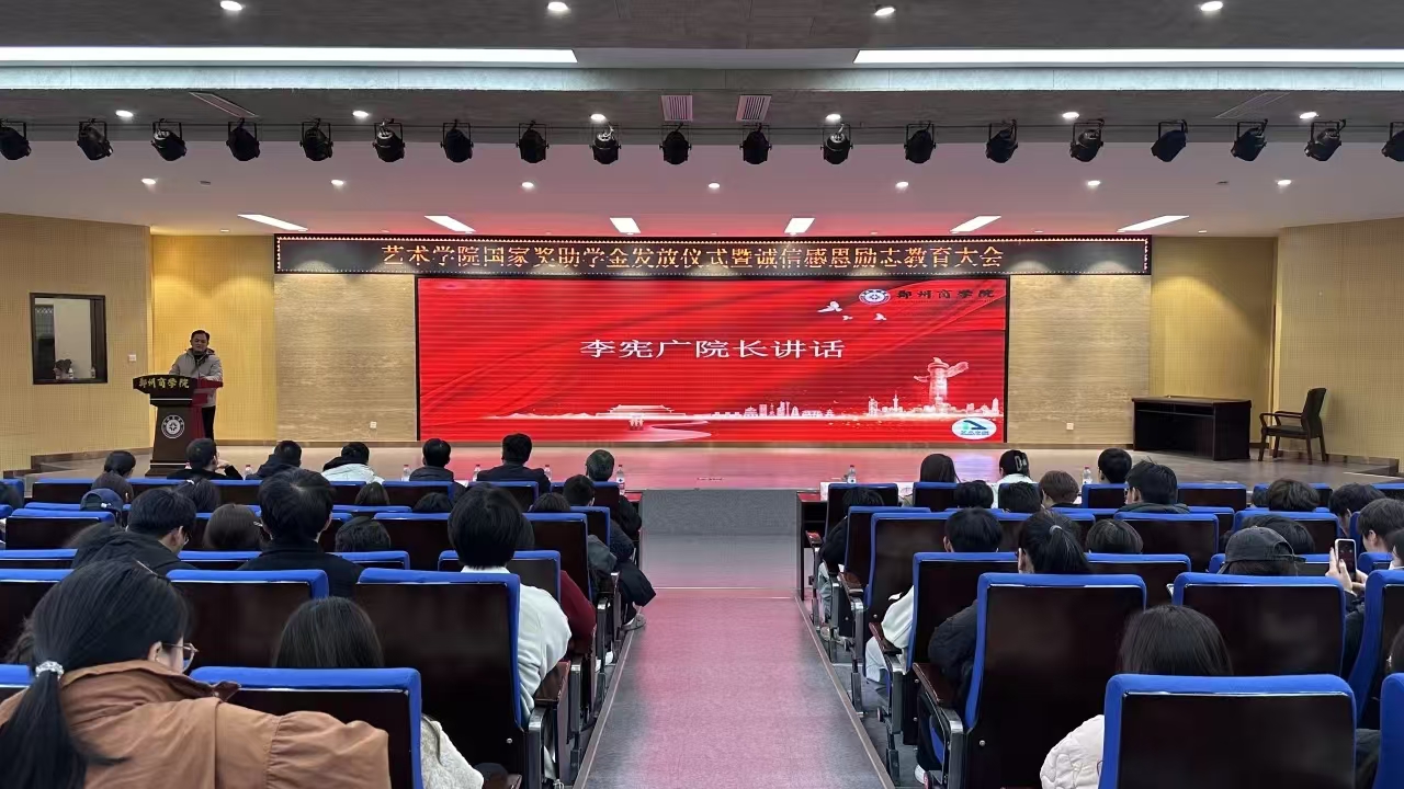 助学筑梦,奋力青春。为充分彰显先进典型的示范力量,全面展现学院学生的卓越品质与积极风貌,引导广大学子对标榜样,坚定理想信念,明晰发展路径,威尼斯886699艺术学院于2024年11月26日晚,在自力楼报告厅隆重举行艺术学院国家奖助学金发放仪式暨诚信感恩励志教育大会。艺术学院院长李宪广、党委书记李帅、副院长徐千淇、团委书记殷晴波、辅导员代表以及部分学生代表参加本次会议。