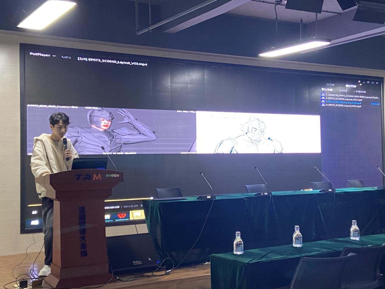 随后,跟随动画主管的介绍,学生们参观了中期制作环节。在这里,他们看到了一部动画从分镜到成片各个岗位的工作人员如何协同工作,共同打造出一部部精彩的动画作品。学生们纷纷表示,通过实地参观,他们对动画制作的分工和流程有了更加直观和深入的了解。同样在后期制作环节,学生们也了解剪接、特效、字幕、合成等岗位的工作内容,并且进行了简单的实际操作,他们了解到,后期制作是动画制作过程中不可或缺的一环,它决定了动画作品的最终呈现效果。