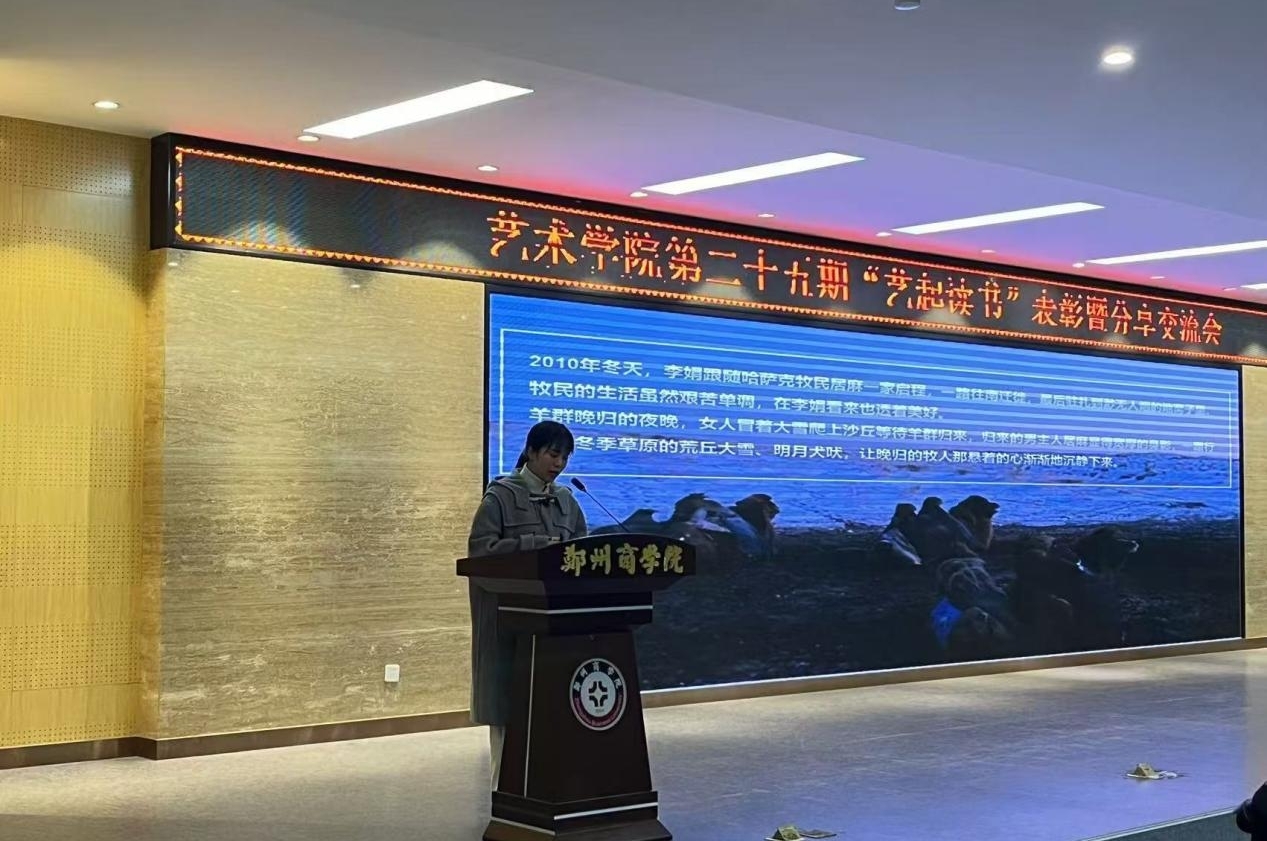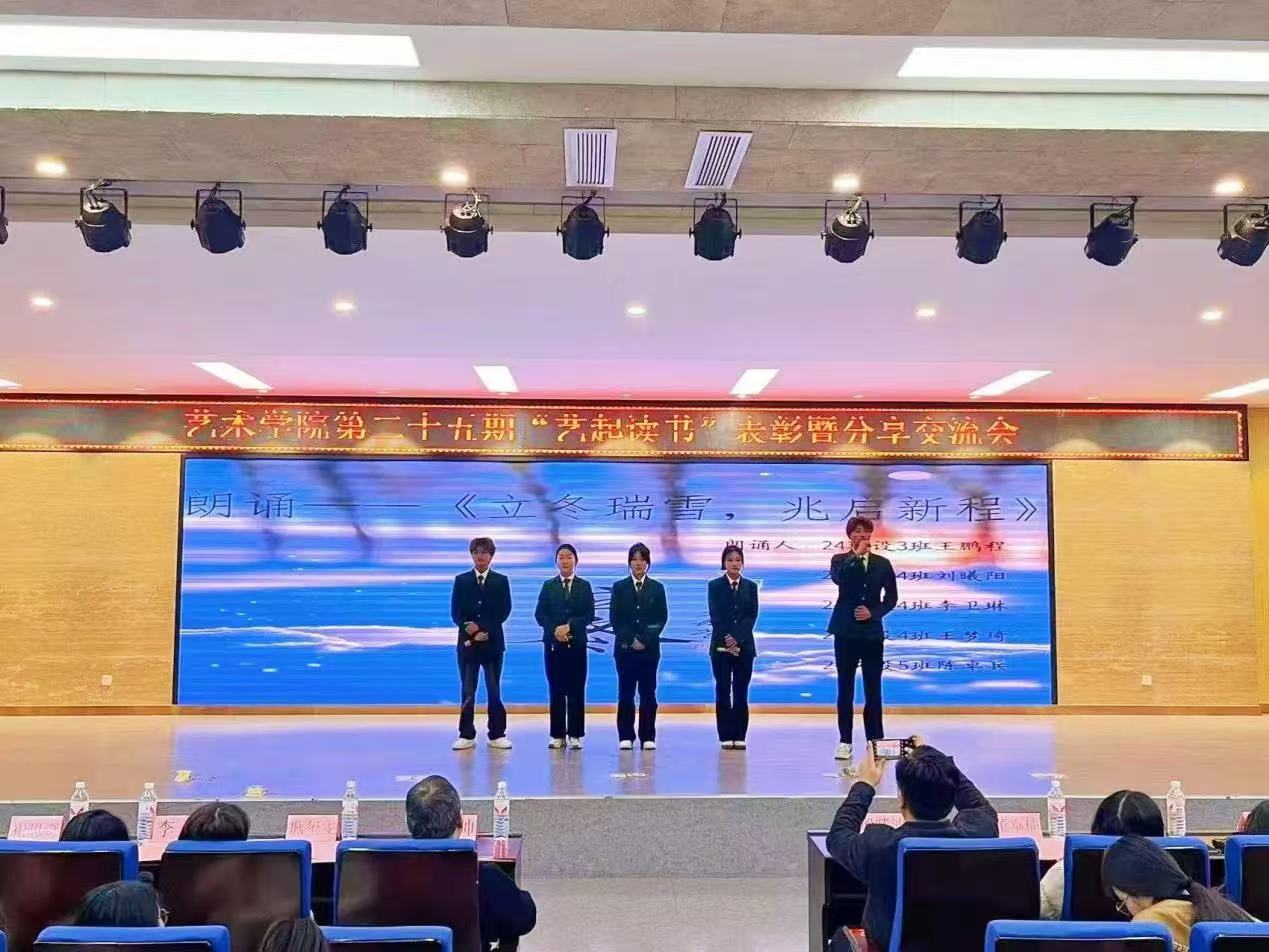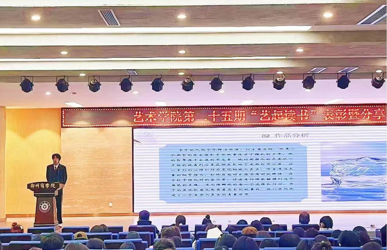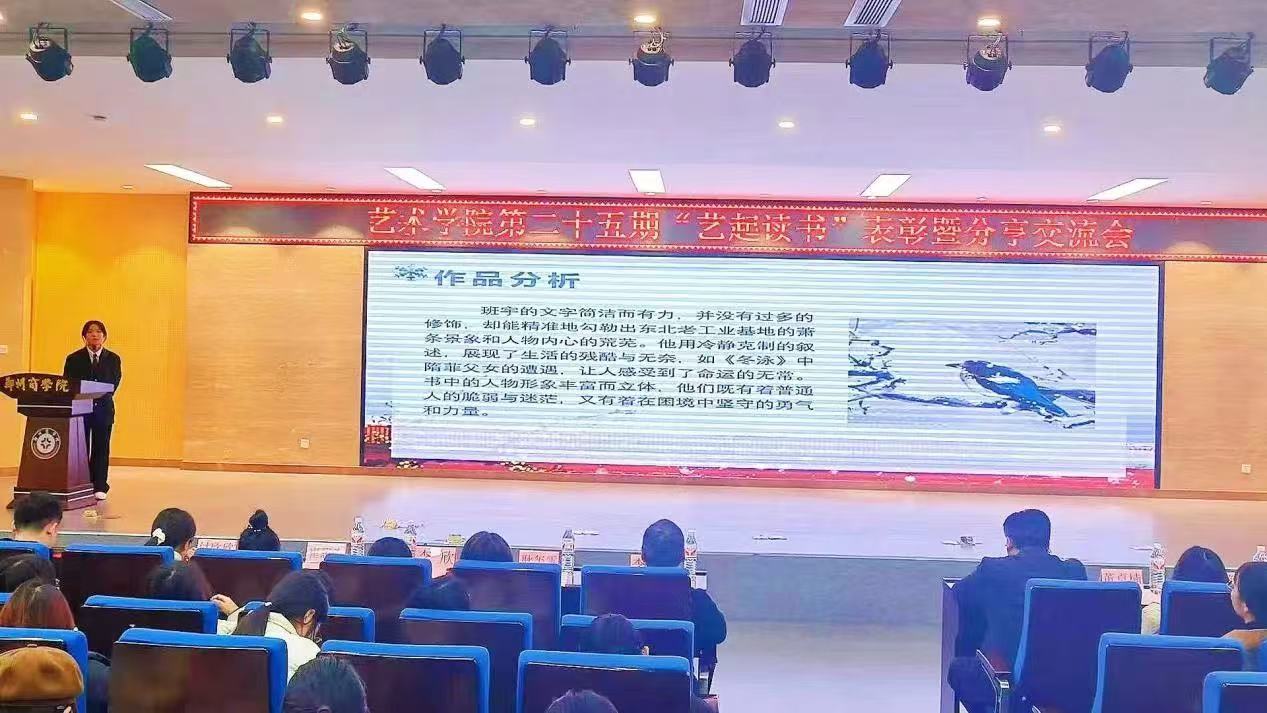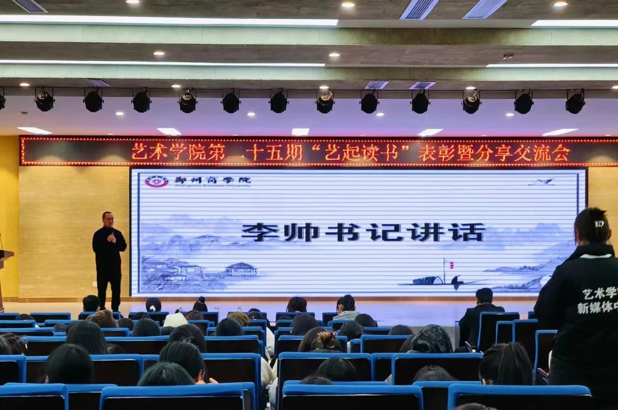 立冬之时,霜华渐染,天地敛藏,书香韵绵。为进一步落实《2024-2025学年书香校园阅读经典工程实施方案》,持续推进学校“三大教育 两大工程”建设,推动书香校园阅读经典工程进一步发展。艺术学院于11月28日晚在自力楼三楼报告厅开展第二十五期“艺”起读书表彰暨分享交流会。艺术学院党委书记李帅、团委书记殷晴波、辅导员老师和学生代表参与了本次活动。