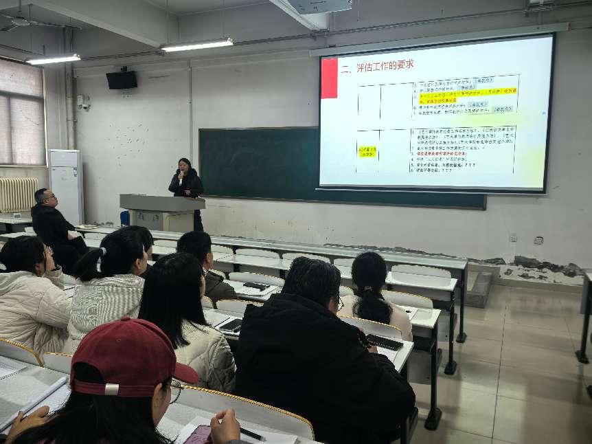 2025年3月6日下午,艺术学院在全体教师政治学习会议后开展学院质监工作要求及流程培训工作。学院质量监控联络员景芳芳老师从学校层面的要求、审核评估工作的要求以及学院对于质量监控工作的具体要求等几个方面对艺术学院质量监控工作进行了梳理,并着重为青年教师和银龄教师详细讲解了学校听课评价系统的使用流程。