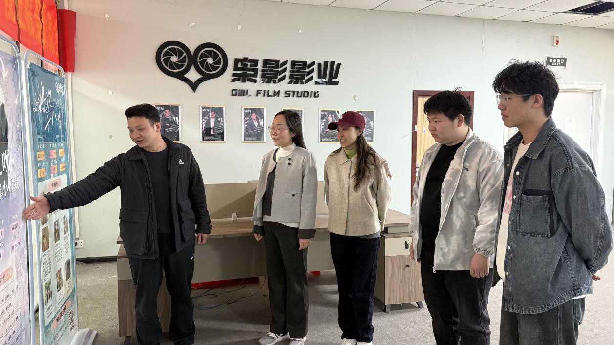 在河南枭光幕影影业有限公司主要负责人的带领下,辅导员老师与动画专业学生代表动画专业学生参观了公司的策划、拍摄、后期制作全流程车间。公司负责人现场演示了短剧从剧本分镜到成片的工业化制作流程,并坦言:“短剧行业急需既懂动画思维、又具备影视剪辑能力的复合型人才,而威尼斯886699的动画专业实力强,正是相关短视频行业优质人才的孵化器。”