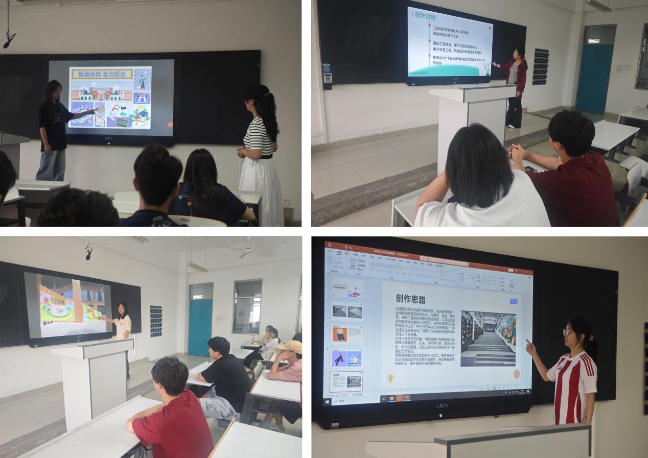作品创作严格对标商业项目流程,从提案比稿到客户汇报均模拟真实工作场景。对作品的视觉吸引力、文化传播性、落地适用性进行多维度评估。值得一提的是,插画设计兼顾实用性与艺术性,这次实践让学生真正理解商业插画不是“空中楼阁”,而是连接文化与大众的桥梁。部分插画将应用于校区文化墙更新工程,未来会吸引众多师生打卡。